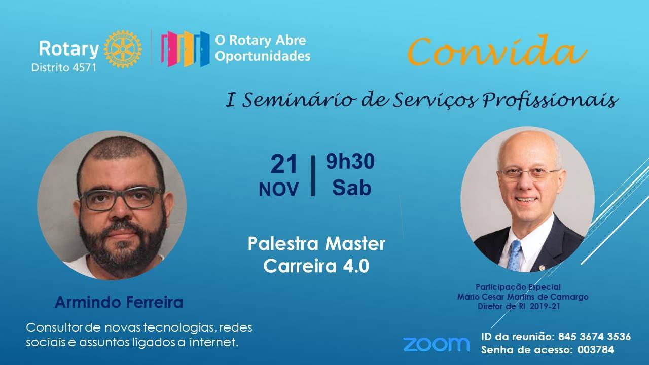 No dia 21 de Novembro à partir das 9:30h da manhã acontecerá o 1o Seminário de Serviços Profissionais.