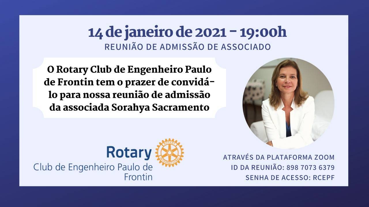 Com o lema rotário do ano 2020-2021, advindo do Presidente de Rotary International, Holger Knaack, “O Rotary abre oportunidades”, na certeza que sua experiência conosco, será profícua e duradoura. Sinta-se por nós abraçada. Desejamos lhe boas-vindas, muitas realizações e sucesso nesta nova etapa da vida.