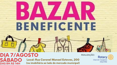 No dia 7 de agosto aconteceu a primeira ação externa do Rotary Club de Caçapava-Jequitibá. Obendecendo todas as normas sanitárias, foi realizado o nosso 1º Bazar Beneficente do ano.