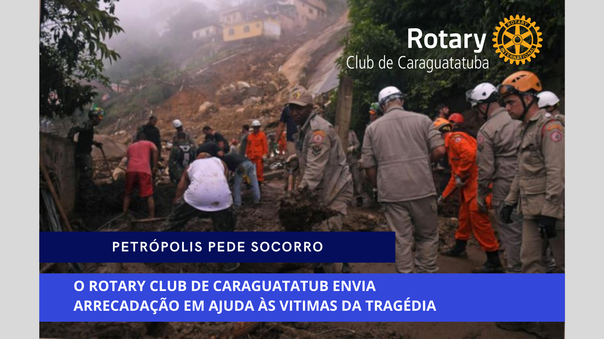 Nem bem haviamos superado a dor causada pelas enchentes de Itabuna - Bahia e outra de proporções ainda mais trágicas aconteceu na cidade de Petrópolis - RJ no dia 15 de fevereiro causando mais de 200 mortos. Os companheiros do Rotary Club de Caraguatatuba sensibilizados com tanta dor não se deixaram abater e imediatamente foram convocados pelo Presidente Robson a iniciar uma campanha de arrecadação em ajuda àquela população sofrida. A opção foi fazer a arrecadação em dinheiro, uma vez que as necessidades eram tantas que somente aqueles diretamente envolvidos nos trabalhos de socorro poderiam direcionar ao que fosse de maior urgência. Em poucos dias os valores arrecadados pelos companheiros e mais uma parte das reservas do clube foram enviados ao Rotary Club de Petrópolis para que dessem a melhor destinação aos recursos. Essa rede e interação entre clubes de Rotary tem mostrado de grande valia em casos como esse, fazendo jus ao lema "Servir para transformar vidas".