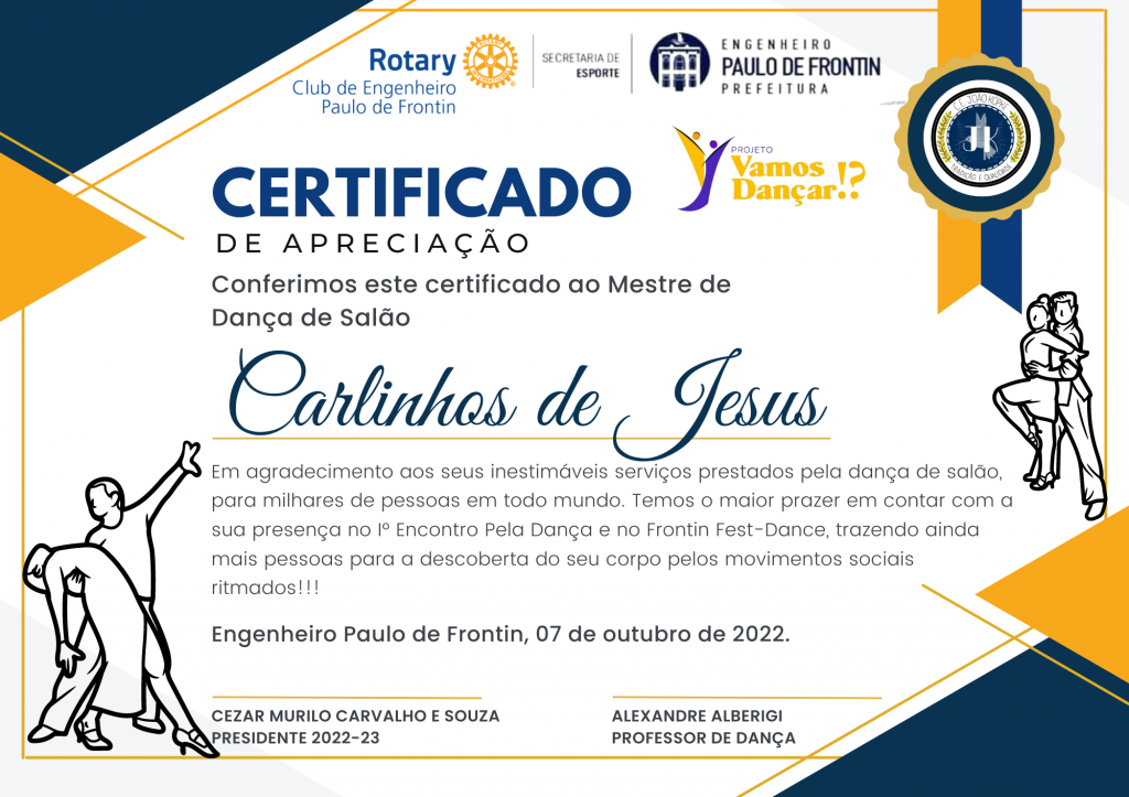 Dentro do Cronograma das atividades para as Festividades do 59º Aniversário do município, o Projeto Vamos Dançar!? Trouxe ao município Carlinhos de Jesus, uma referência no mundo da dança de salão.Nascido no bairro de Marechal Hermes e criado em Cavalcanti, tornou-se um expoente da dança de salão no Brasil, apresentando-se em espetáculos teatrais e em programas de televisão. Atualmente é diretor da Casa de Dança Carlinhos de Jesus, no Rio de Janeiro. Preste a completar 70 anos Carlinhos bate um papo descontraído com o Professor ALexandre Alberigi, representantes de grupos da 3ª Idade como Luar de Prata e Idade e Sabedoria, representante da Casa dos Conselhos do município, representantes do Rotary Club de Engenheiro Paulo de Frontin e alunos do projeto e admiradores da dança de salão., participaram da roda de conversa os professores Luiza Goulart (Forró da Lulu em Juiz de Fora) e Max Gomes da Planet Dance em Petrópolis e SESI Petrópolis.