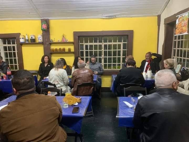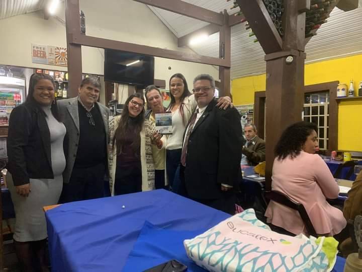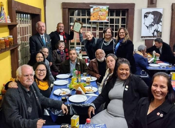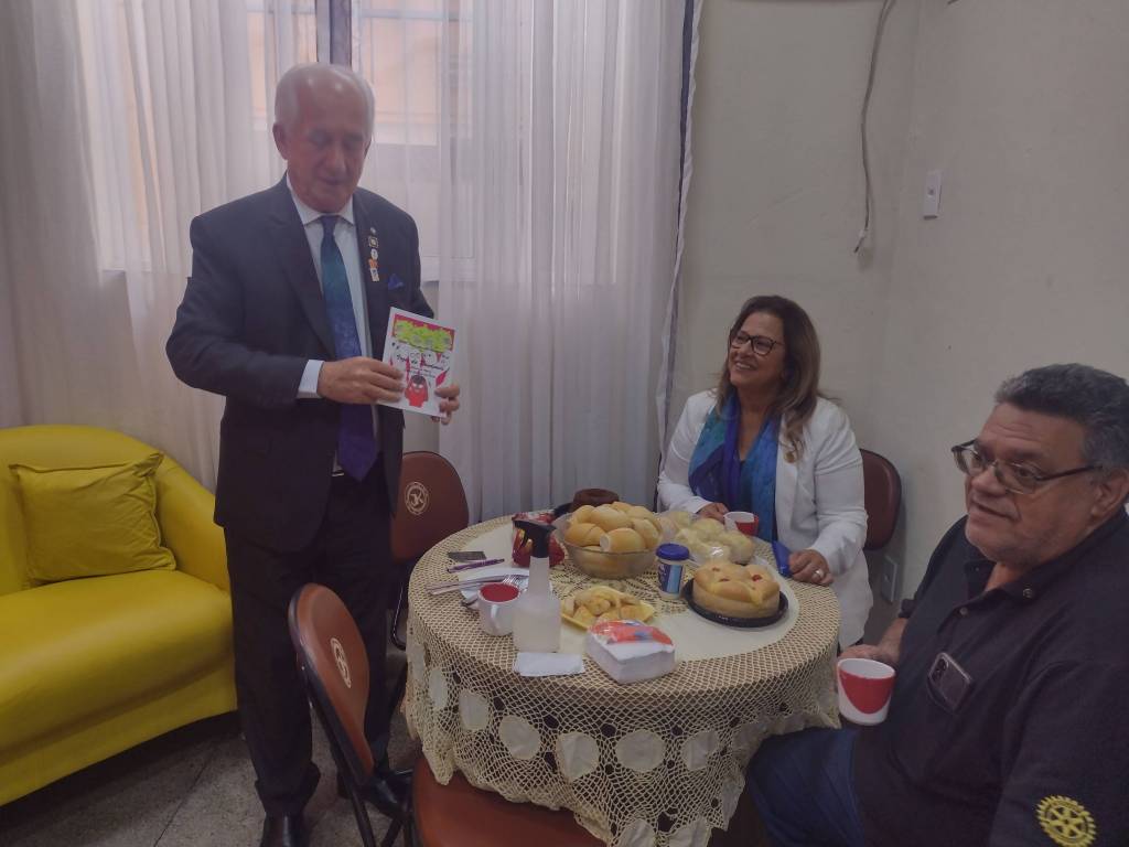 À noite, para fechar a visita com chave de ouro, a família rotária recebeu o casal no Restaurante Toca do Dourado para reunião festiva. Tivemos um jantar de confraternização.