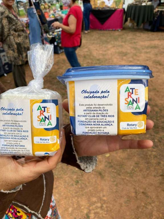 Doação simbólica de mudas para o Projeto Artesania Pilões, produto desenvovido pela artesãs a partir das doações do Rotary Club Três Rios em parceiria com a Fundação de Educação e Cidadania Nova Aliança, que aprovaram um projeto junto a Fundação Rotária para aquisição de insumos destindos a confecção de 5.500 mascaras e 800 sabões.