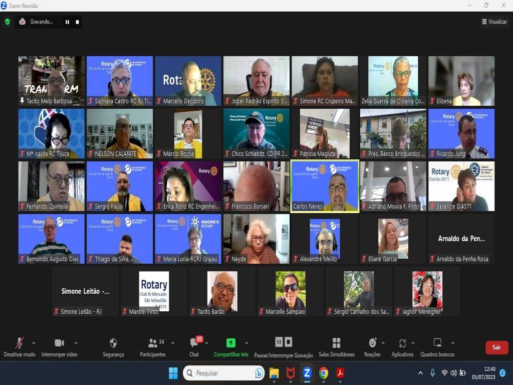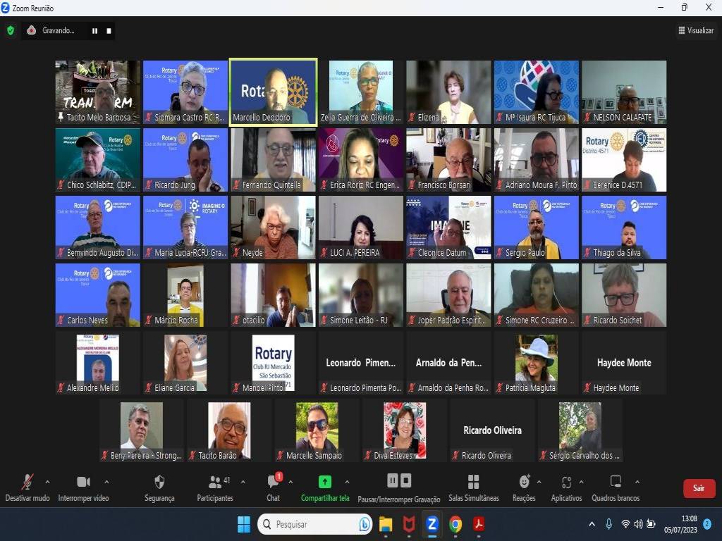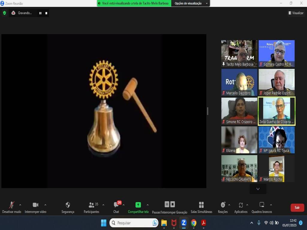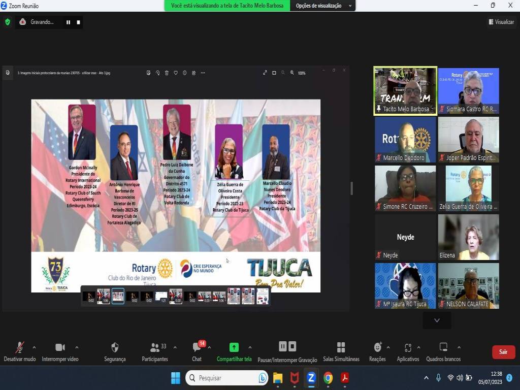 Hoje, dia 5 de julho, às 12:30h, o Rotary da Tijuca aconteceu a Solenidade virtual de Transmissão de Cargo e posse do Conselho Diretor 2023-2024