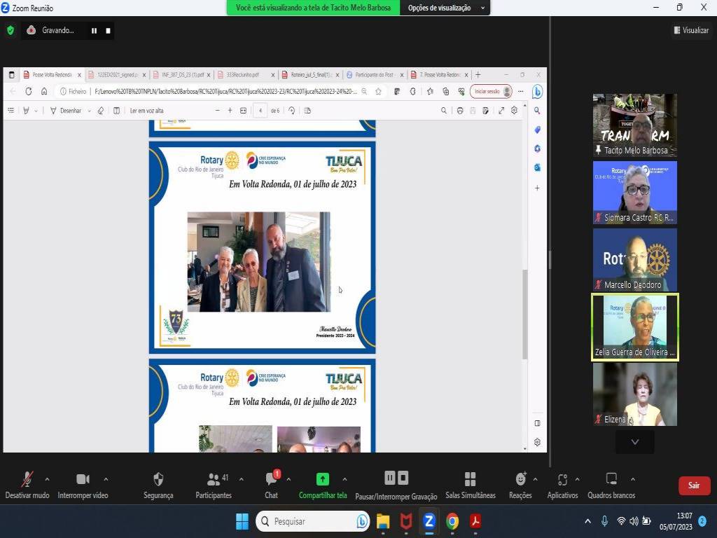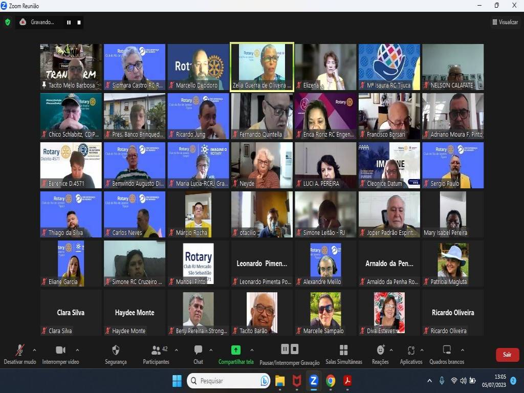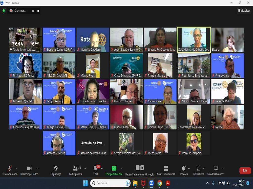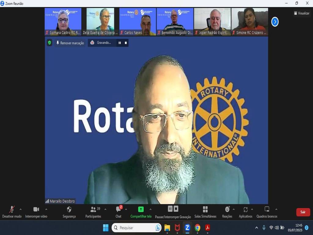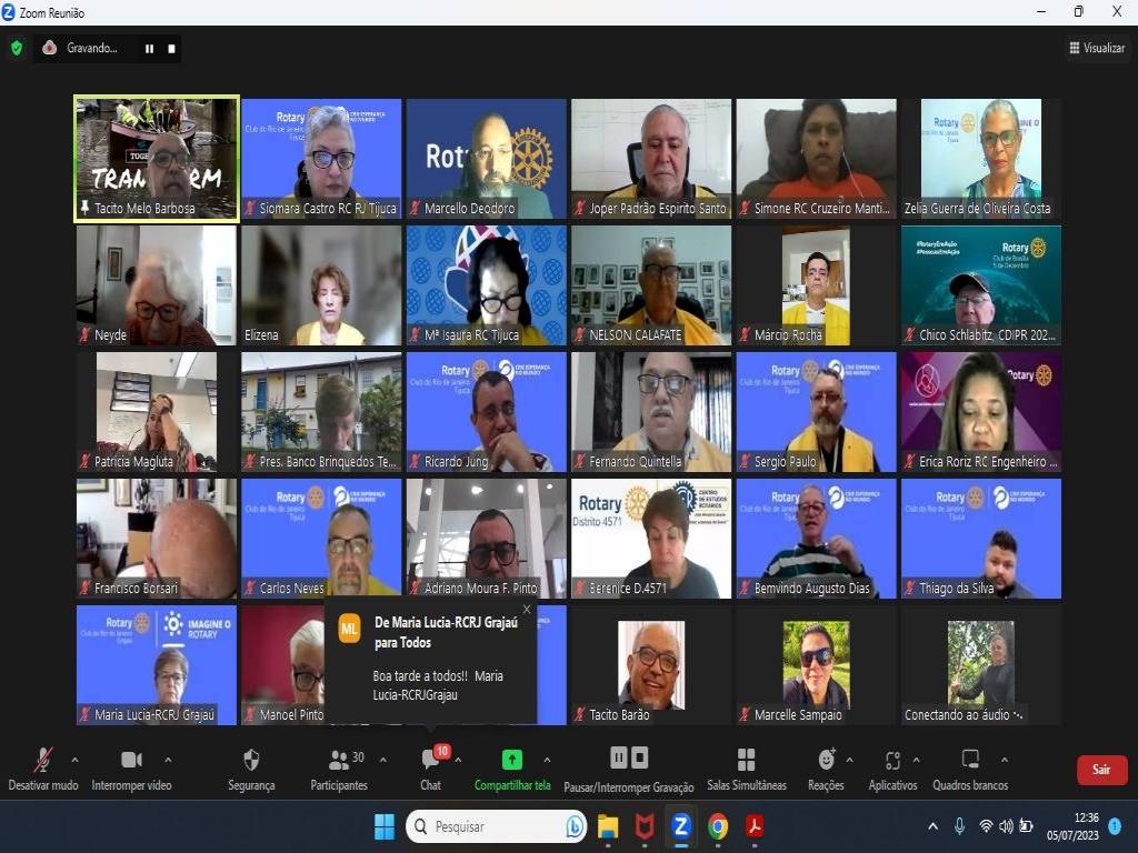 Hoje, dia 5 de julho, às 12:30h, o Rotary da Tijuca aconteceu a Solenidade virtual de Transmissão de Cargo e posse do Conselho Diretor 2023-2024