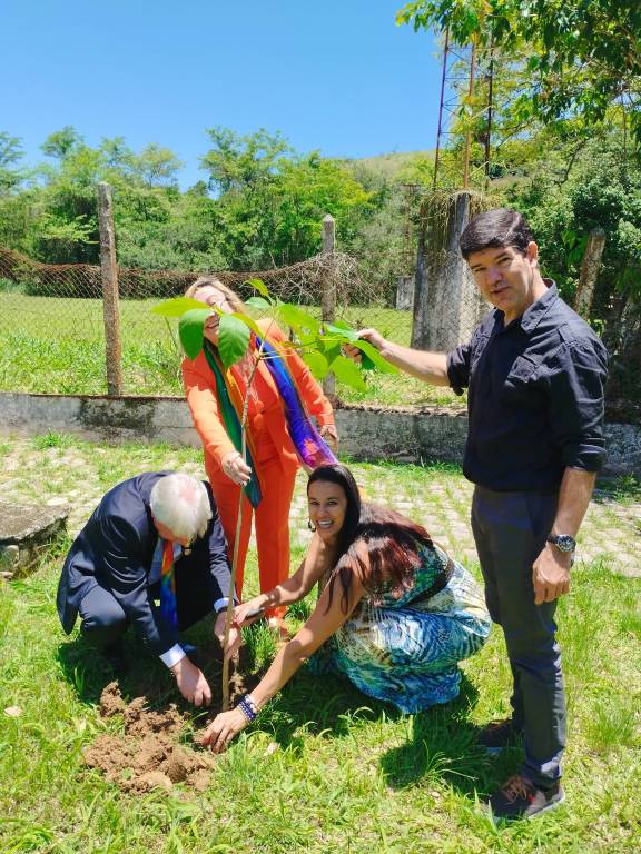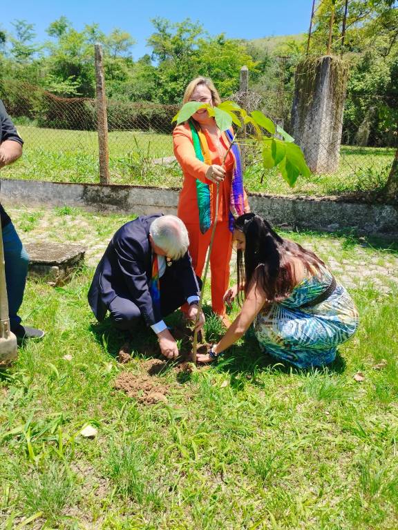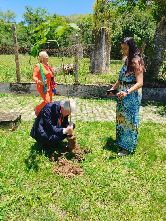 Seguindo para o IFRJ Campus Engenheiro Paulo de Frontin, o Professor Lindinei Rocha guiou a comitiva pelas instalações, destacando a incubadora Silício Fluminense. O ponto alto foi o plantio de uma muda de ipê branco, batizada de "árvore do conhecimento" para eternizar o momento.