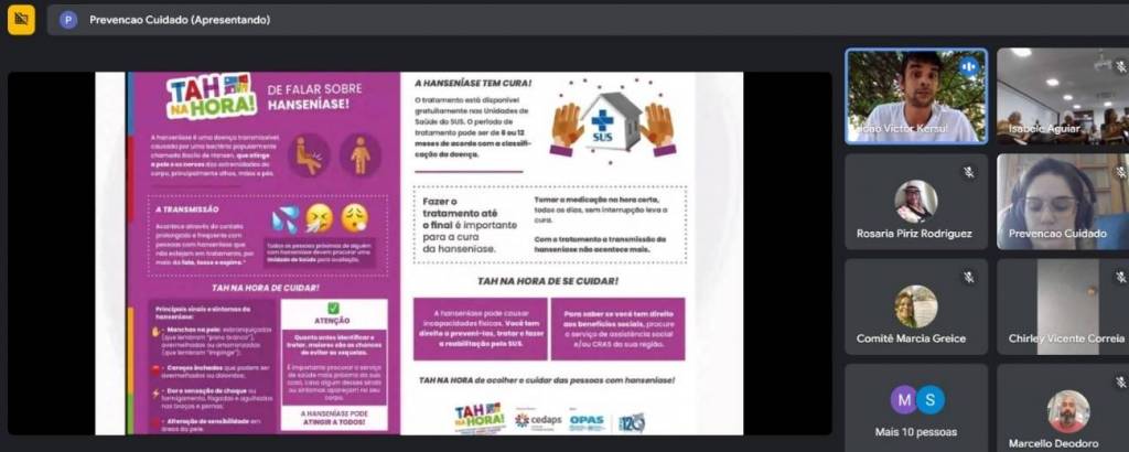 No dia 7 de fevereiro, ocorreu a Reunião da Rede Nacional de Comunidade Saudáveis, Temas direcionados a Prevenção da Saúde, sobre o janeiro Roxo – Precisamos falar de Hanseníase. Presente o Presidente Marcello Deodoro, que também é Conselheiro Distrital de Saúde.
