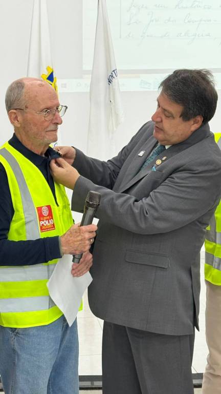 À noite, vivemos um momento especial de companheirismo durante o jantar festivo, ocasião em que o clube prestou uma linda homenagem ao companheiro Pasqualini, concedendo-lhe o título de sócio honorário — reconhecimento à sua longa história de dedicação e serviço. Na mesma celebração, o clube apresentou a ata de fundação e homenageou seus companheiros fundadores que ainda permanecem ativos, preservando a memória e a essência deste Rotary tão vibrante.