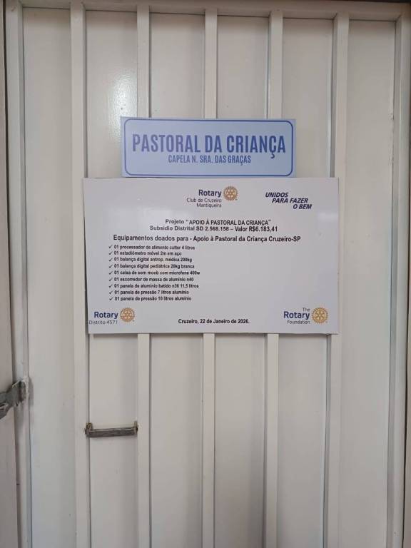 Unindo forças pelo futuro! No dia 22 de janeiro, o Rotary Club Cruzeiro Mantiqueira realizou a entrega de novos equipamentos para a Pastoral da Criança (Basílica Menor Imaculada Conceição). A ação, realizada na Capela de Nossa Senhora das Graças, foi viabilizada através do Subsídio Distrital do Distrito 4571. Com esses novos equipamentos, o atendimento às crianças, adolescentes e famílias da nossa comunidade ganha ainda mais qualidade e carinho. Seguimos juntos, pois estamos Unidos Para Fazer o Bem! Apoio: @mantifm1007 #Rotary #Distrito4571 #UnidosParaFazerOBem #PastoralDaCriança #Solidariedade #CruzeiroSP #RotaryMantiqueira
