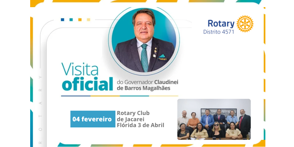 O Governador Claudinei de Barros Magalhães realizou visita ao Rotary Club de Jacareí - Flórida Três de Abril, na noite desta segunda-feira, 02 de fevereiro de 2026. 👏🌟