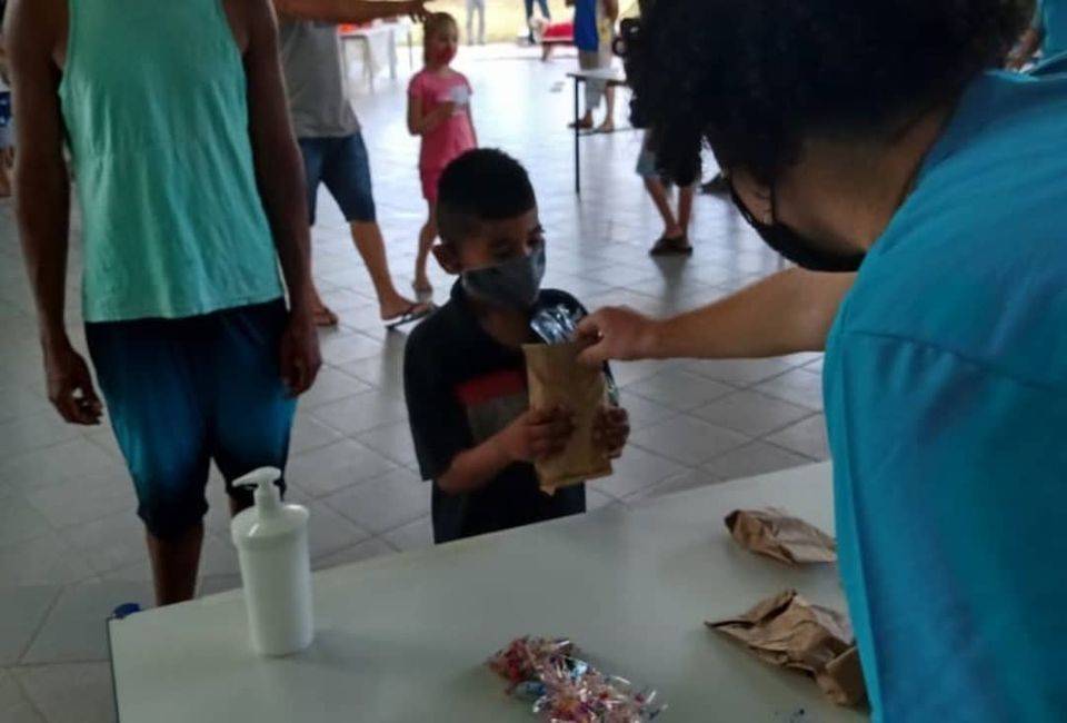 Respeitando todas as normas sanitárias e de distanciamento, os alunos foram presenteados com balas, pipoca, picolé e uma lembrancinha em comemoração ao Dia das Crianças.