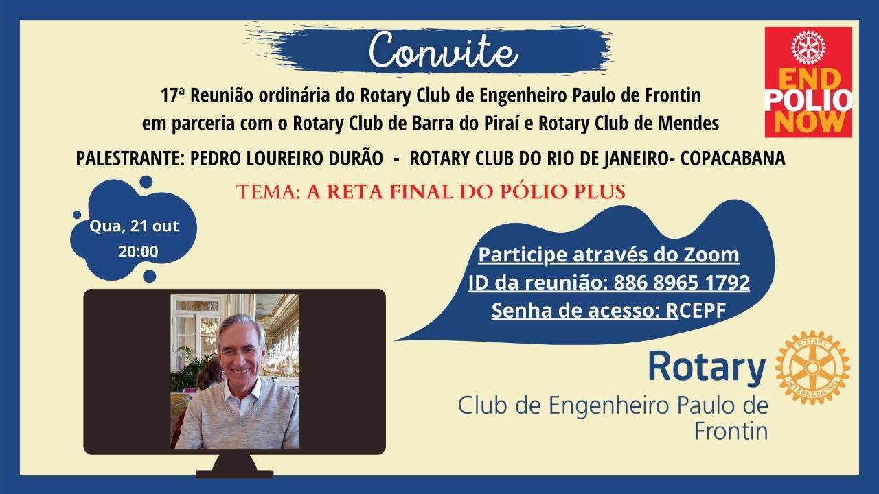 A Reta final do Pólio Plus é o tema da palestra do Coordenador do Programa End Polio Now o governador AR 2014-15 Pedro Loureiro Durão, Distrito 4571.