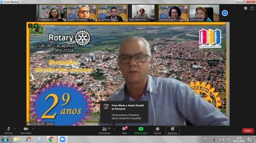 Mesmo sem festa a data não passou em branco, comemoramos em grande estilo durante a Reunião Interclubes Virtual, no dia 05 de novembro, com a presença de companheiros de diversos clubes e visitantes.
